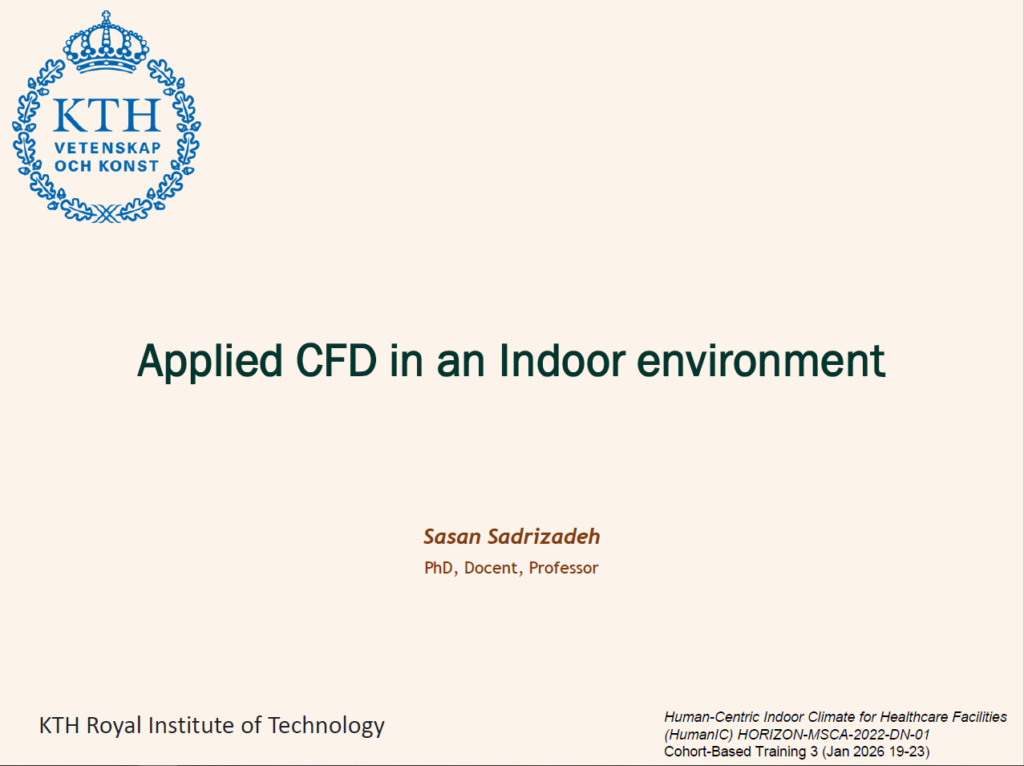 This presentation, titled „Applied CFD in an Indoor Environment,” was delivered by Professor Sasan Sadrizadeh from the KTH Royal Institute of Technology. It serves as a comprehensive introduction to Computational Fluid Dynamics (CFD), specifically within the context of healthcare facilities and indoor air quality. The lecture outlines key learning objectives, including the ability to explain CFD equations, describe simulation workflows, and critically assess indoor airflow studies. Professor Sadrizadeh details the mechanics of CFD simulations, breaking them down into essential steps: pre-processing, solving, and post-processing. The content emphasizes why CFD is a potent alternative to experimental investigation, particularly for visualizing air movement and pollutant distribution in complex spaces like hospital wards and operating rooms. Additionally, the presentation explores various ventilation types, such as piston, mixing, and hybrid flow, and their impact on contaminant removal.Finally, it addresses the critical factors of thermal comfort—including humidity and air speed—and how digital modeling can enhance the well-being of occupants