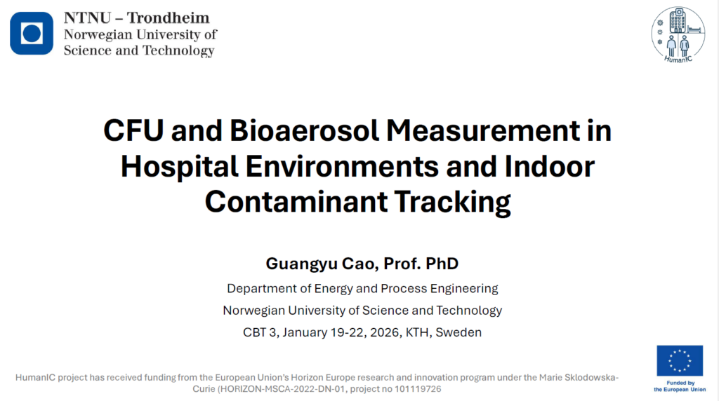 This presentation, titled „CFU and Bioaerosol Measurement in Hospital Environments and Indoor Contaminant Tracking,” was delivered by Professor Guangyu Cao from the Norwegian University of Science and Technology (NTNU) as part of the European Union-funded HumanIC project. It examines the various sources of microbiological contaminants in hospitals—including medical staff, surgical activities, and ventilation systems—which are primary drivers of surgical site infections. The content establishes the importance of Colony-Forming Units (CFU) and Plaque-Forming Units (PFU) as standard metrics for monitoring viable bacteria and viruses in the air. Case study one details the experimental measurement of airborne particles and CFUs in an operating room equipped with a laminar airflow (LAF) system to evaluate environmental standards. The second case study focuses on how different types of surgical clothing and varying activity levels during simulated operations impact the concentration of contaminants near the surgical wound. In the third case study, researchers utilized depth registration sensing technology to correlate specific surgical team movements with the spatial distribution of bacterial shedding. Finally, the presentation discusses advanced contaminant tracking methods, including tracer gas analysis, Computational Fluid Dynamics (CFD) modeling, and real-time sensor-based monitoring.